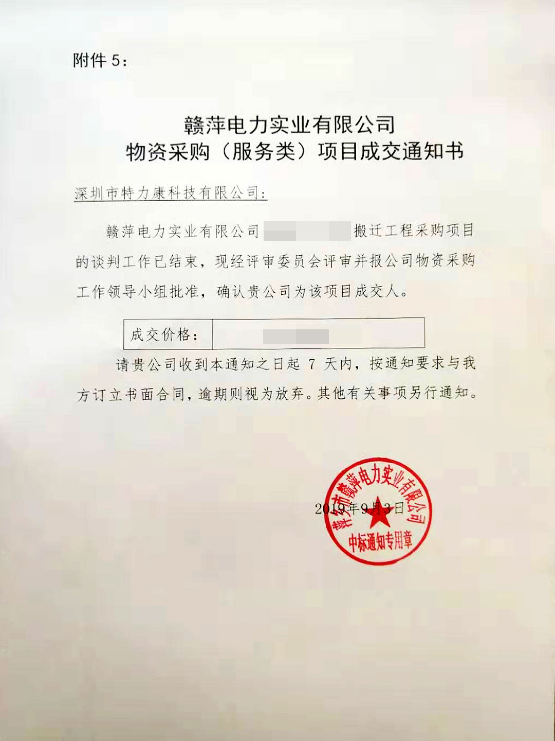 贛萍電力220KV線路搬遷工程采購(gòu)項(xiàng)目談判工作已結(jié)束,經(jīng)招標(biāo)評(píng)審委員會(huì)評(píng)審,現(xiàn)確定我司以此次線路搬遷工程中標(biāo)單位。