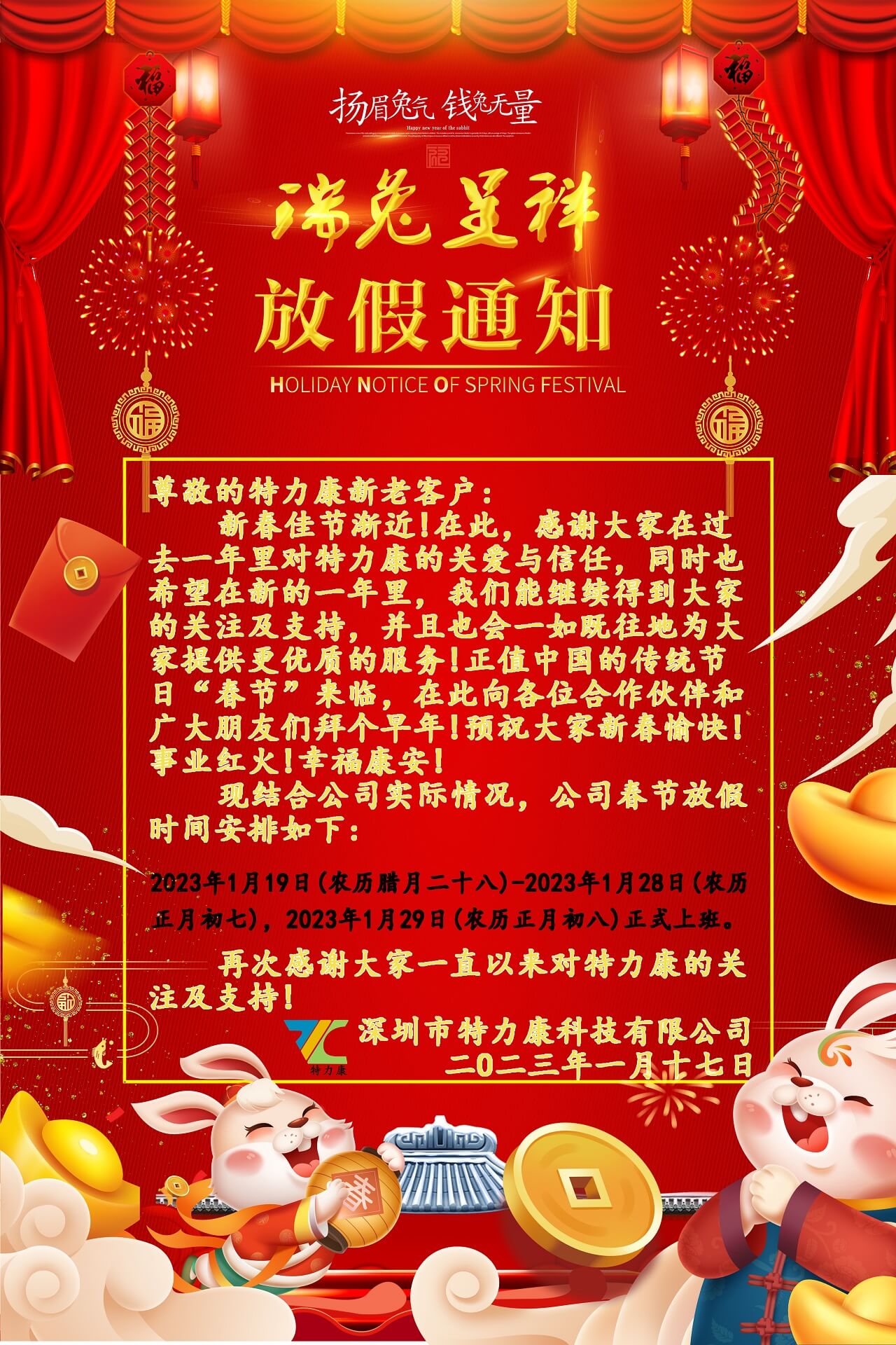 尊敬的特力康新老客戶: